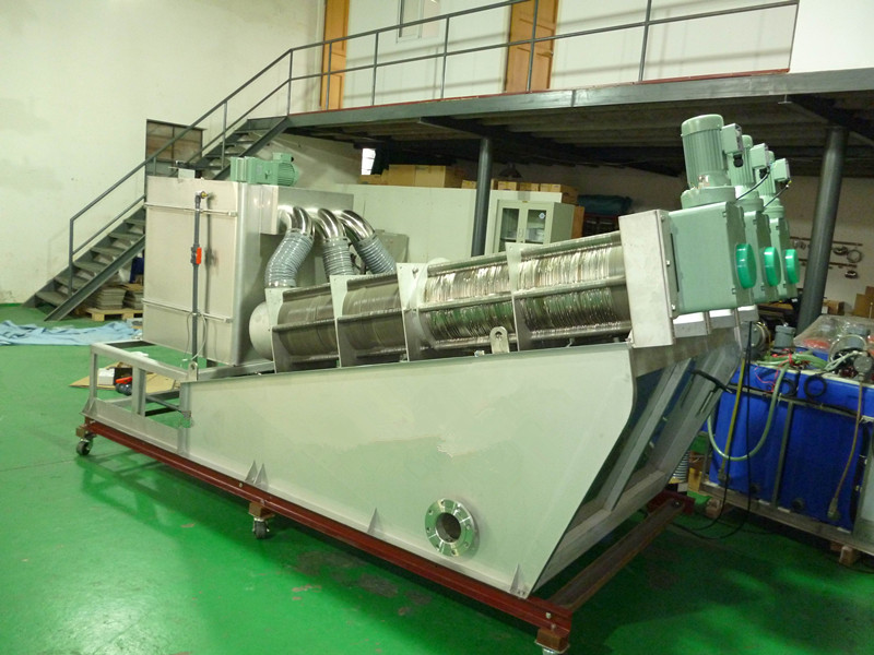 該產(chǎn)品主機(jī)由螺旋推動(dòng)軸,多重固定疊片和多重游動(dòng)疊片組成的疊螺式污泥脫水機(jī),固定疊片和游動(dòng)疊片間有調(diào)節(jié)墊片。設(shè)備由兩個(gè)功能區(qū)組成,在污泥入口部為濃縮段,進(jìn)入脫水機(jī)的污泥經(jīng)濃縮后產(chǎn)生的濾液由脫水段固定疊片和游動(dòng)疊片間隙排出;經(jīng)濃縮后的污泥進(jìn)入脫水段,受到螺旋軸進(jìn)一步壓縮而脫水成泥餅排出機(jī)外。且有較大的靈活性。自動(dòng)化程度較高。